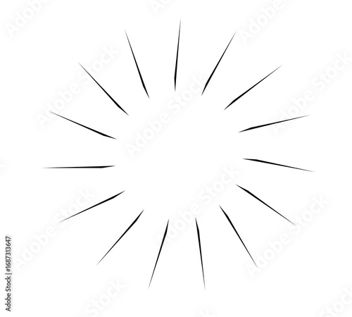 Obraz premium Black starburst radial rays outline with sharp pointed lines for highlights,...