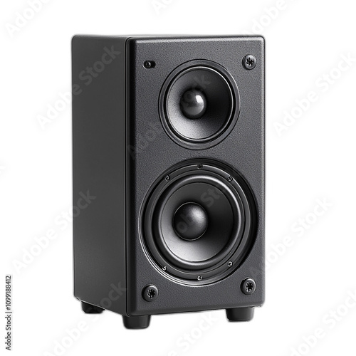 © Kanimalia, Obraz premium Black Stereo Speaker on Black Background. Illustration on transparent & white background, isolate PNG