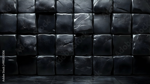 © Siasart Studio, Obraz premium Black Stone Wall Texture: Dark, Rough, and Realistic