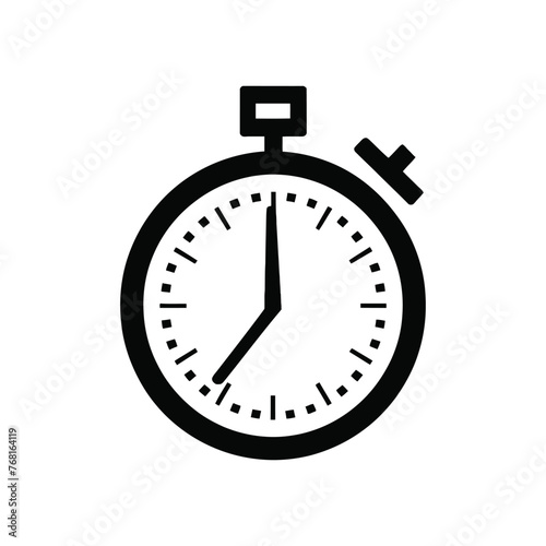 Obraz premium Black stopwatch icon, flat logo vector.