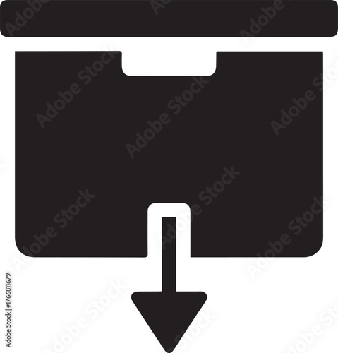 Obraz premium Black Storage Box with Down Arrow Icon | Minimal Flat Vector Design for Abode Stork