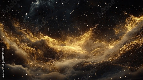 © Pannin, Fototapeta premium Black storm clouds fill the sky with an ominous presence, as delicate golden sparks pierce through, creating a stunning and magical visual contrast.