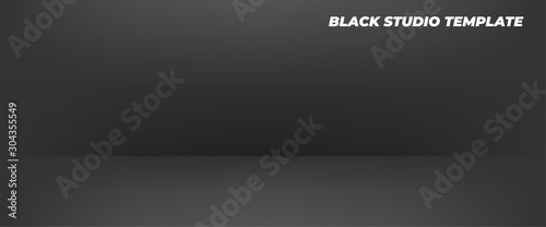 © Marina, Obraz premium Black studio template. Vector mock up 3D stage abstract background.