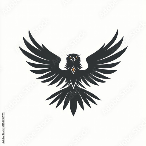 © lestari, Obraz premium Black stylized hawk with wings spread wide.