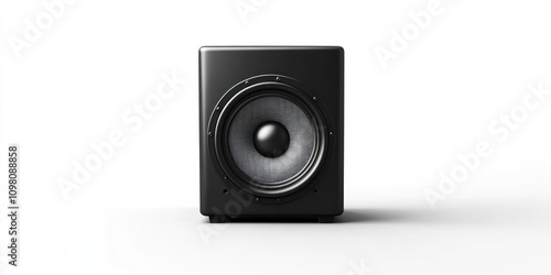 Fototapeta premium Black subwoofer speaker isolated on white background.