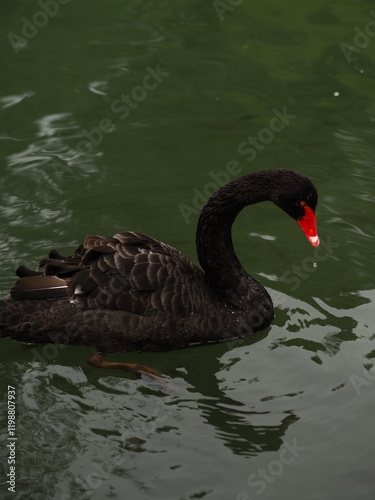 Fototapeta premium Black swan, mute. Australian black swan swims in the water