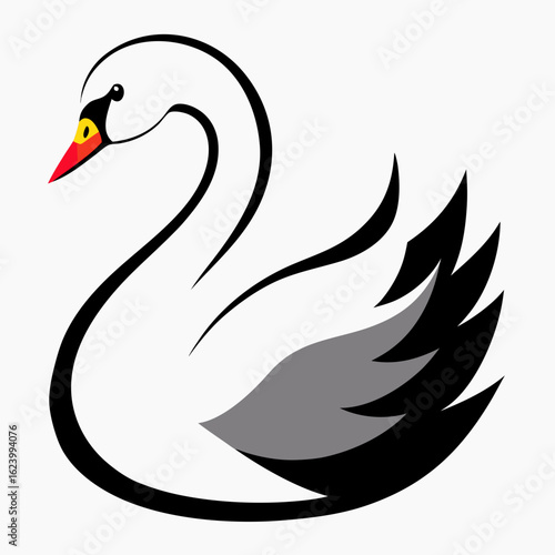 © MdAsadulIslam, Fototapeta premium black swan on white