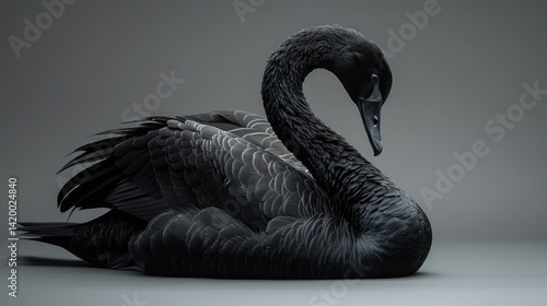 © Diyra - creations, Fototapeta premium Black Swan Resting on Water – Elegant Wildlife Scene