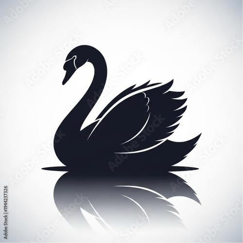 © Pixel Harbor, Obraz premium Black Swan Silhouette with Reflection.