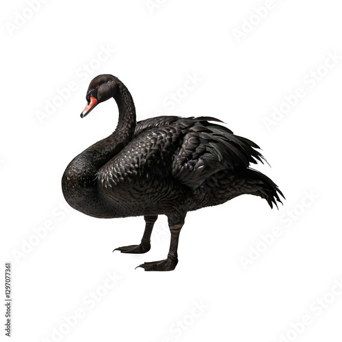 © Hamlous, Fototapeta premium Black swan standing on transparent background generative AI