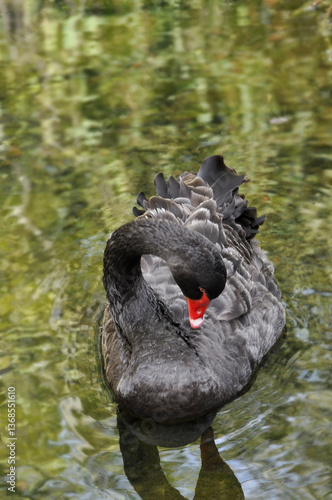 © Myrarte, Fototapeta premium Black swan swimming in the lake