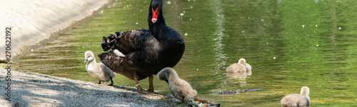 © 682A_IA, Fototapeta premium Black swan with chicks. Animal wildlife