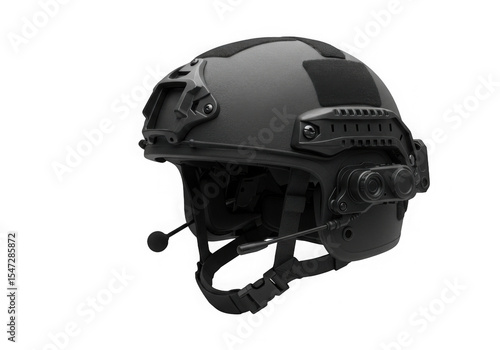 © Almas Ikhwan, Naklejka premium Black tactical helmet showing advanced features in studio lighting, ready for digital composition