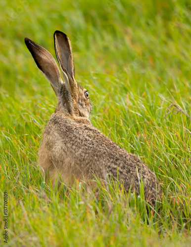 © ranchorunner, Fototapeta premium Black-tailed jackrabbit, seen in the wild near a north California marsh