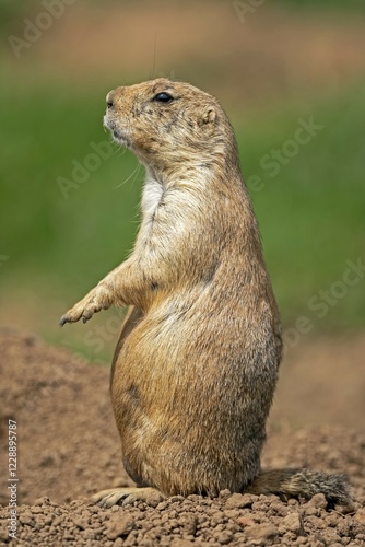 Naklejka premium Black-tailed Prairie Dog (Cynomys ludovicianus) stands attentively, France, Europe