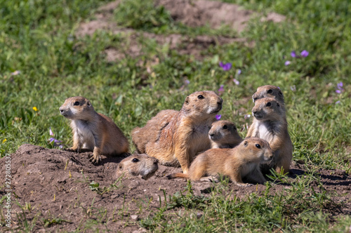 Fototapeta premium Black-tailed prairie dogs (Cynomys ludovicianus), a family at their burrow,...