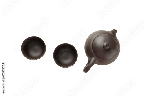 © Atlas, Naklejka premium Black teapot with two matching tea bowls, isolated, PNG