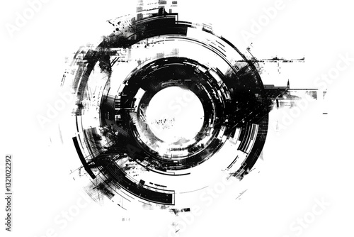 Obraz premium Black Tech Circle Design Isolated on Transparent Background