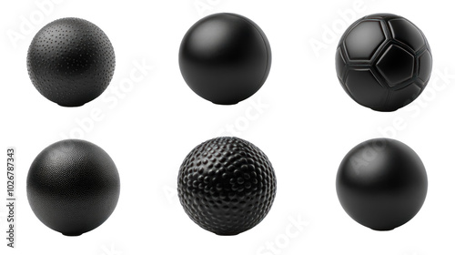 © Belho Med, Fototapeta premium black textured sports balls silhouettes isolated on transparent background