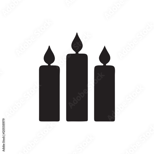 Fototapeta premium Black Three candles silhouette vector illustration on white background.