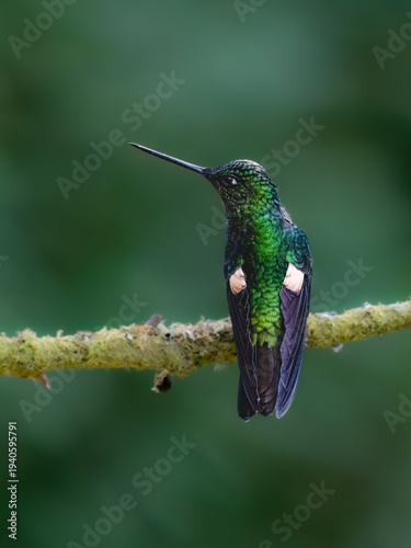 © FotoRequest, Fototapeta premium Black-throated Mango Perched On Mossy Branch