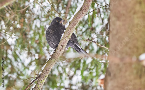 © enskanto, Obraz premium black thrush in the forest. Winter