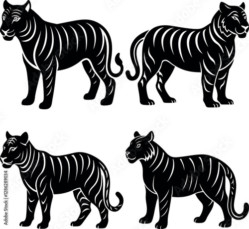 © Ali, Obraz premium Black Tiger Silhouette Vector Icon Crisp & Detailed.
