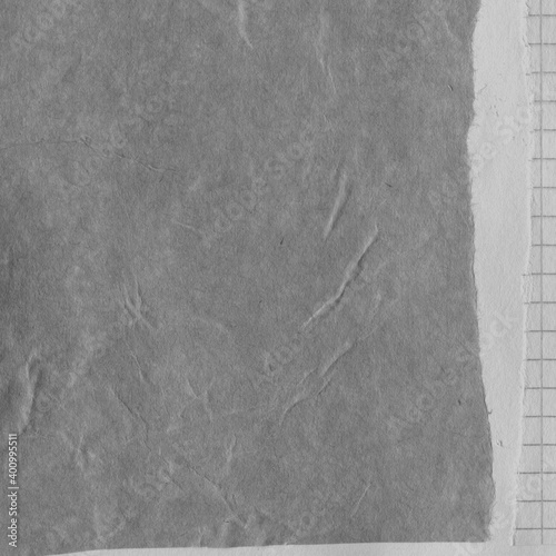 Fototapeta premium Black torn paper collage close-up. Texture made from various paper and...