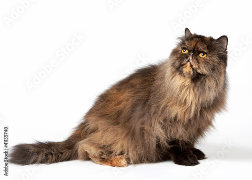 © dionoanomalia, Fototapeta premium Black tortoise persian female cat on white background