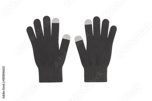 © Krtola , Obraz premium Black touchscreen gloves providing warmth and connectivity during winter, enabling device use in cold weather, transparent background