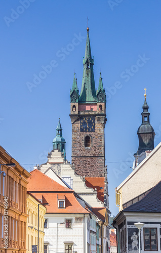 Fototapeta premium Black tower and historic houses in Klatovy, Czech Republic