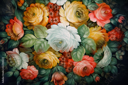 © Pavel Losevsky, Obraz premium Black tray painted with floral patterns. Russian national crafts