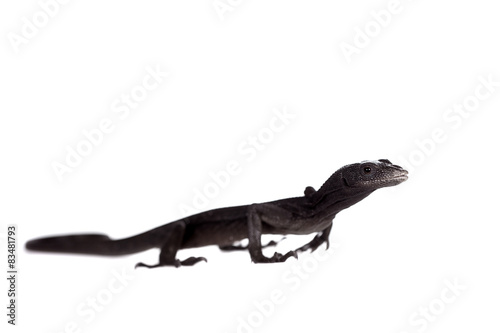 Fototapeta premium Black tree monitor lizard, varanus beccari, on white