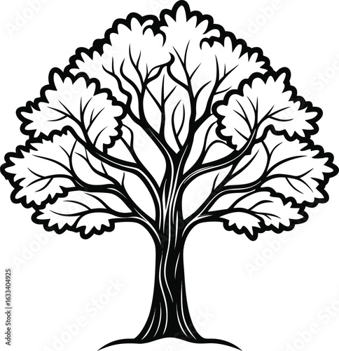 Fototapeta premium Black tree outline isolated on white background vector illustration