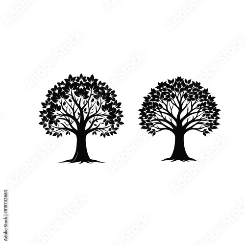© Morsalin, Naklejka premium Black Tree silhouette set vector illustration