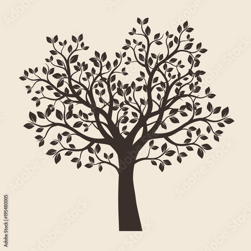 © topor, Fototapeta premium Black Tree with Leaves. Vector Illustration.