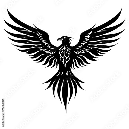 © Irina, Obraz premium Black tribal phoenix bird illustration with outstretched wings