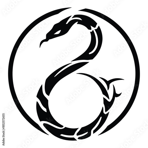 © Bedroom Studio, Fototapeta premium Black Tribal Snake Tattoo Design in Circular Frame