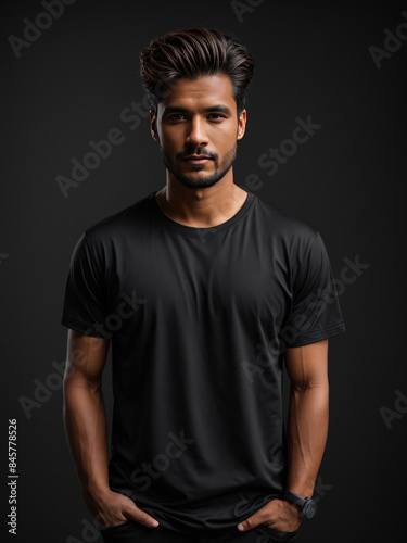 © shrinay, Naklejka premium black tshirt mockup isolated on on black