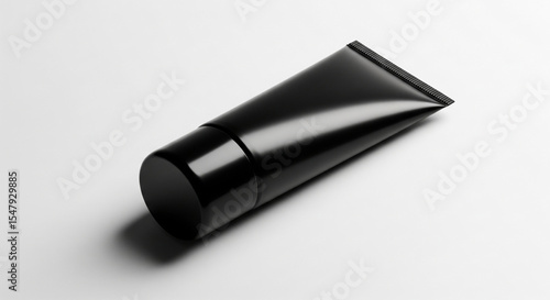 Fototapeta premium Black tube mockup on white background, showcasing a sleek and minimalist design, ideal for cosmetic or beauty product presentation, offering blank space for branding