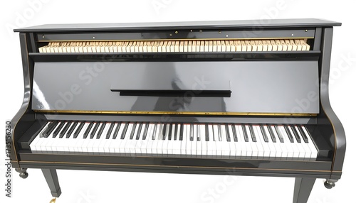© gambar, Fototapeta premium Black upright piano, studio shot