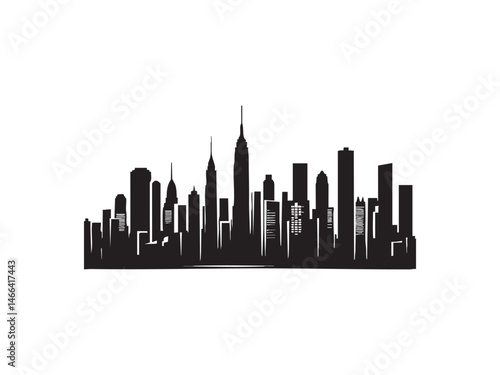© Design Lab, Naklejka premium Black Urban Skyline Silhouette Vector Art – Minimal Flat Design