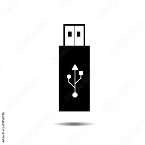 Obraz premium Black usb flash drive icon with symbol and shadow, vector isolated on white...