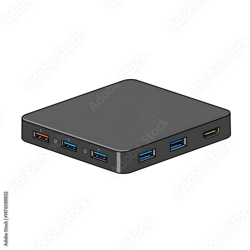 © Oktaf, Obraz premium Black USB Hub for Data Transfer and Connectivity on White Background