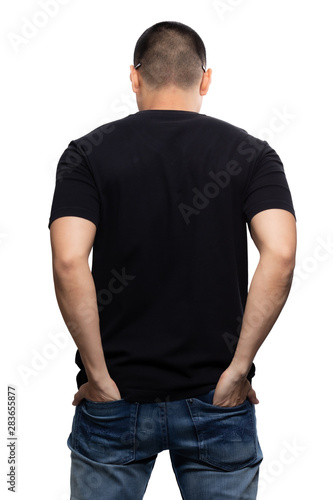 © RooftopStudioBangkok, Fototapeta premium Black v-neck tshirt on asian model