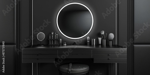 © Alexandr, Fototapeta premium Black vanity with illuminated mirror
