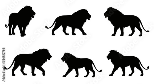 Obraz premium Black vector animal silhouettes collection featuring horses, dogs, cows, and...