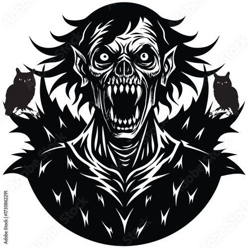 Fototapeta premium Black vector art illustration of a powerful tribal winged skull mascot with a...