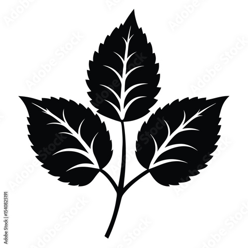 Fototapeta premium Black Vector Illustration Depicting Three Serrated Leaves Connected By A Single Stem