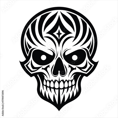 © Mdsharaf, Fototapeta premium 💀 Black vector illustration of a scary human skull and crossbones symbol for death, danger, and Halloween horror